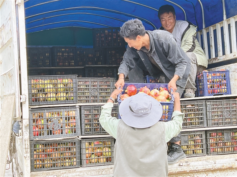 圖為昌西村果農(nóng)將石榴裝車,準備外運銷售。 記者 劉楓 通訊員 吳子偉 攝