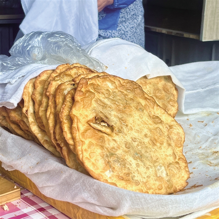 如果你擔(dān)心一份蓋澆飯吃不飽,可以提前在位于同一條巷子的“爺爺奶奶肉餅”買上一個(gè)肉餅。這家店同樣是城關(guān)區(qū)的老店,深受拉薩群眾的喜愛(ài)。肉餅脆而不油,面粉和肉餡的香氣完美融合。建議上午12:00前去,這家店鋪通常賣完肉餅就早早關(guān)門啦!
