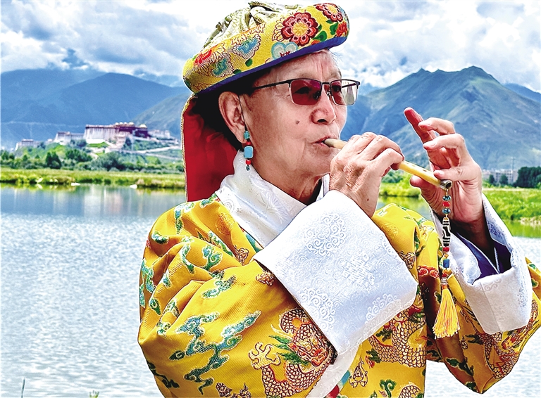 交談中,時(shí)間仿佛回到了1963年。當(dāng)時(shí)年僅13歲的次旦由國(guó)家民委招生,被保送到北京的中央民族學(xué)院,開(kāi)始系統(tǒng)學(xué)習(xí)民族器樂(lè)專業(yè),專攻竹笛演奏,從此走上了藝術(shù)之路?!拔覀円黄鹑ケ本W(xué)習(xí)的共有24人,當(dāng)時(shí)大家年紀(jì)還小,不知道去北京學(xué)習(xí)意味著什么,后來(lái)才慢慢了解到我們身上承擔(dān)著藏族民族器樂(lè)的傳承與推廣的責(zé)任,所以大家都很刻苦地學(xué)習(xí)和訓(xùn)練。”次旦說(shuō)。