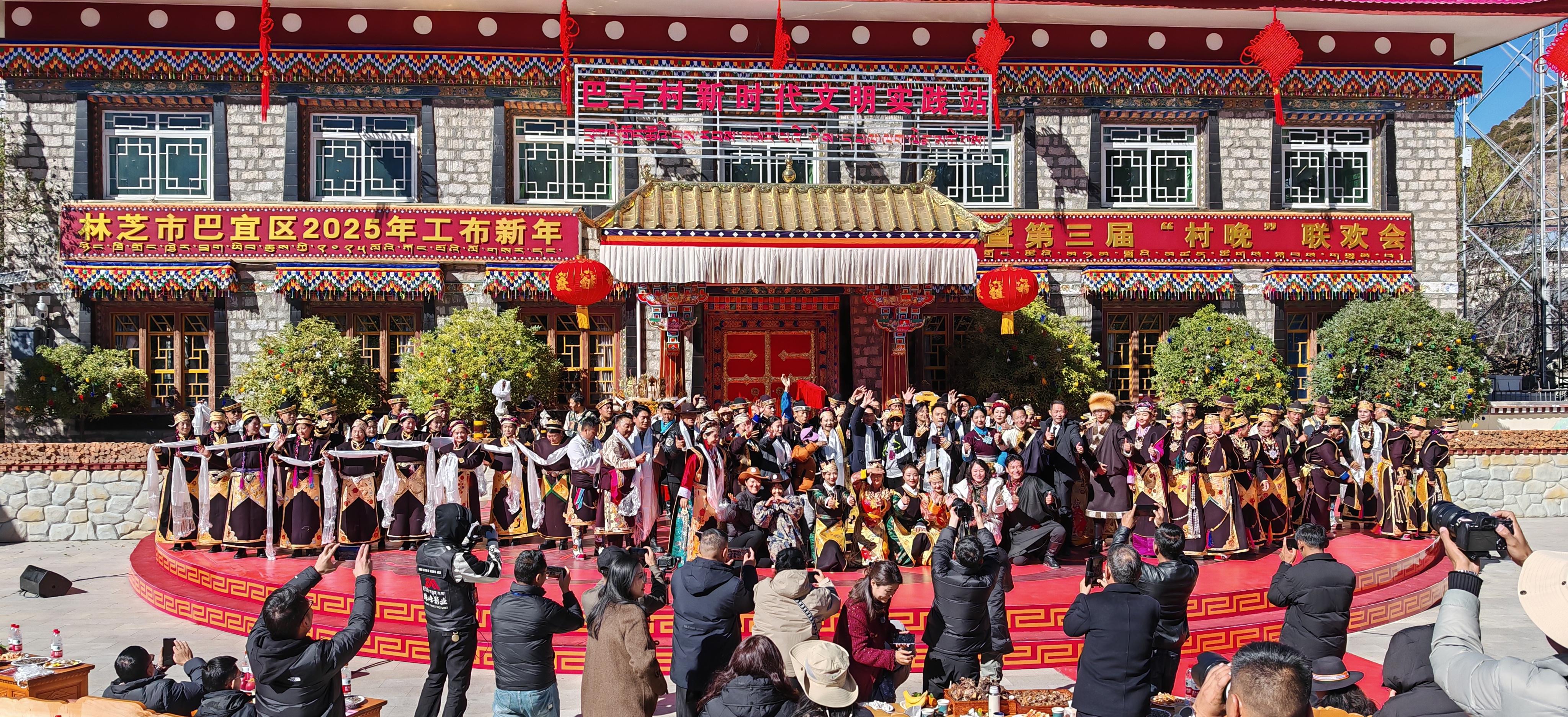 初冬時(shí)節(jié),西藏林芝市巴宜區(qū)巴吉村村道兩旁的樹枝上掛滿紅彤彤的燈籠,處處喜氣洋洋,工布新年年味濃郁,文化活動廣場上更是熱鬧非凡。11月30日,巴宜區(qū)迎來了一年一度的文化盛事,2025年工布新年暨第三屆“村晚”聯(lián)歡會在巴吉村隆重舉行。