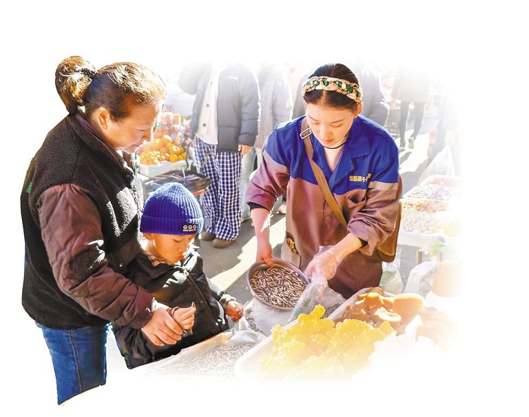 過(guò)新年,置辦年貨是不可或缺的一環(huán),它飽含了人們對(duì)收獲的喜悅和對(duì)生活的熱愛。新年前幾天,大家都在忙著置辦過(guò)年所需物資,林芝市各大年貨市場(chǎng)熙熙攘攘,牦牛肉、酥油、奶渣、糌粑、青稞酒等各式年貨琳瑯滿目,人們手上提著大包小包穿梭在年貨攤位前,處處洋溢著節(jié)日的喜慶氛圍。
