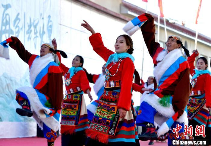 圖為第三屆“鄉(xiāng)村振興 那曲奮進(jìn)”成果轉(zhuǎn)化暨第十八屆畜產(chǎn)品展銷會(huì)開幕式上的文藝演出。李林 攝