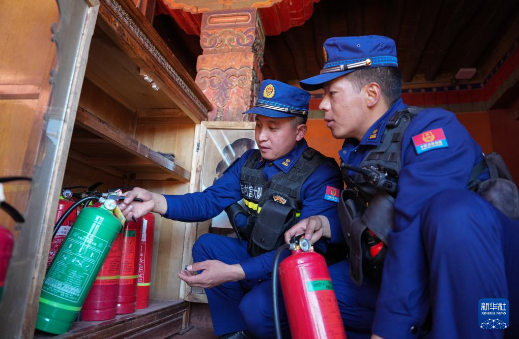 12月5日,布宮消防救援大隊隊員在例行檢查消防設備。新華社記者 晉美多吉 攝