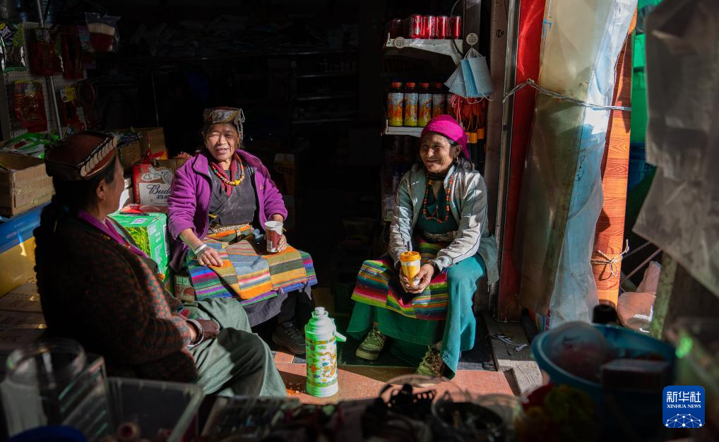 12月13日,陳塘鎮(zhèn)夏爾巴群眾坐在商店門口。