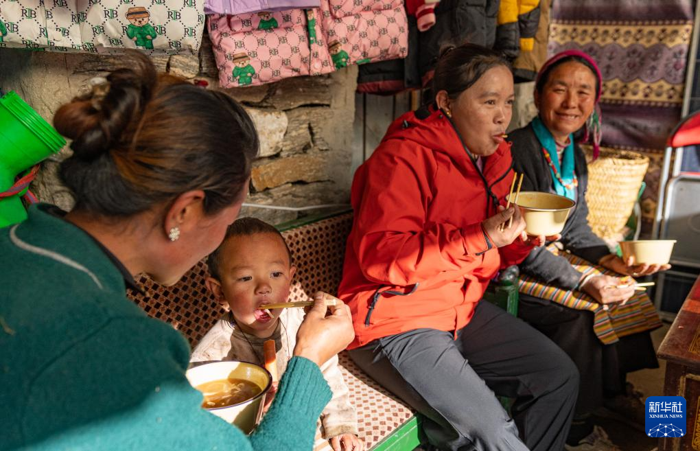 12月13日,陳塘鎮(zhèn)夏爾巴群眾在一起吃早飯。