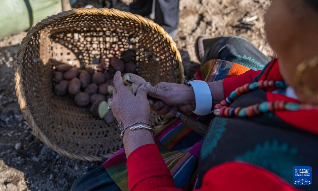 12月13日,非遺陳塘夏爾巴歌舞代表性傳承人朗嘎在切土豆。