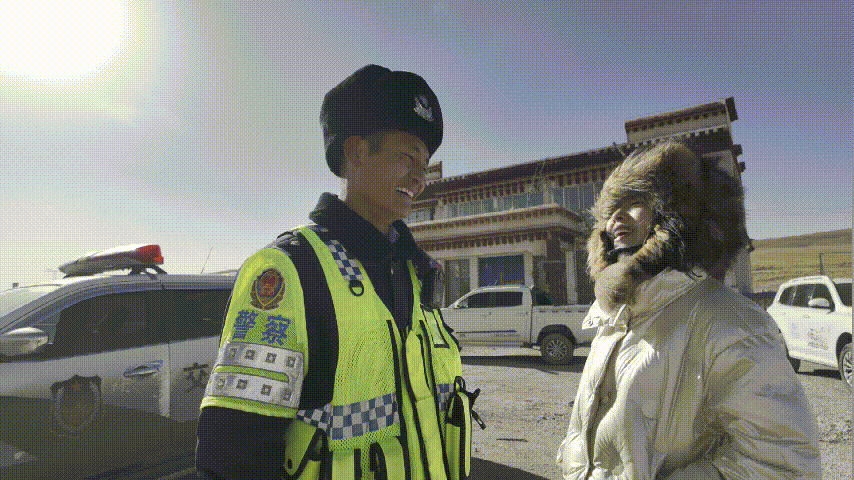 如此“好天氣”,記者已凍得麻木,稍微小跑已是氣喘吁吁。而安多交警們早已習慣。