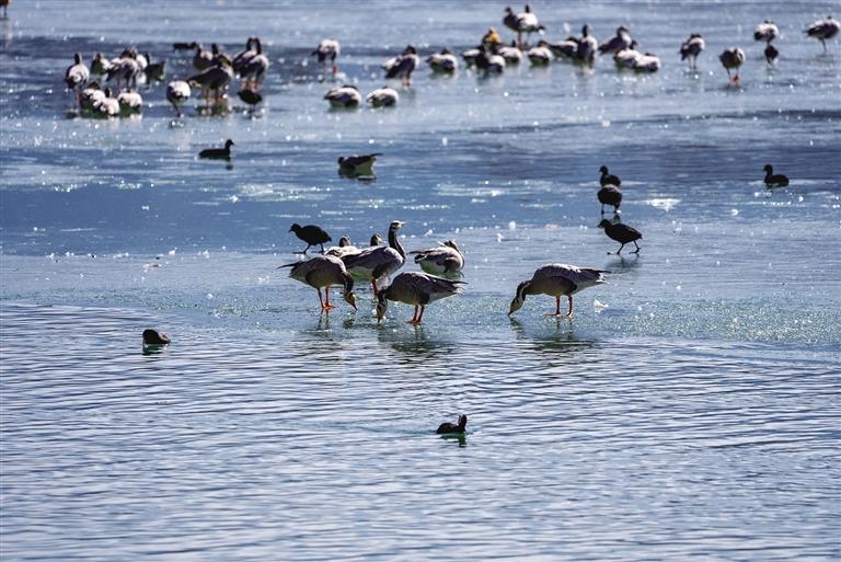 黑頸鶴,作為國家一級保護(hù)動物,其數(shù)量的增加尤為令人欣喜。它們身姿優(yōu)雅,在濕地中翩翩起舞,宛如大自然的精靈。而斑頭雁和赤麻鴨也成群結(jié)隊(duì)地在水中暢游,歡快的叫聲回蕩在空中,為濕地增添了無限的生機(jī)與活力。