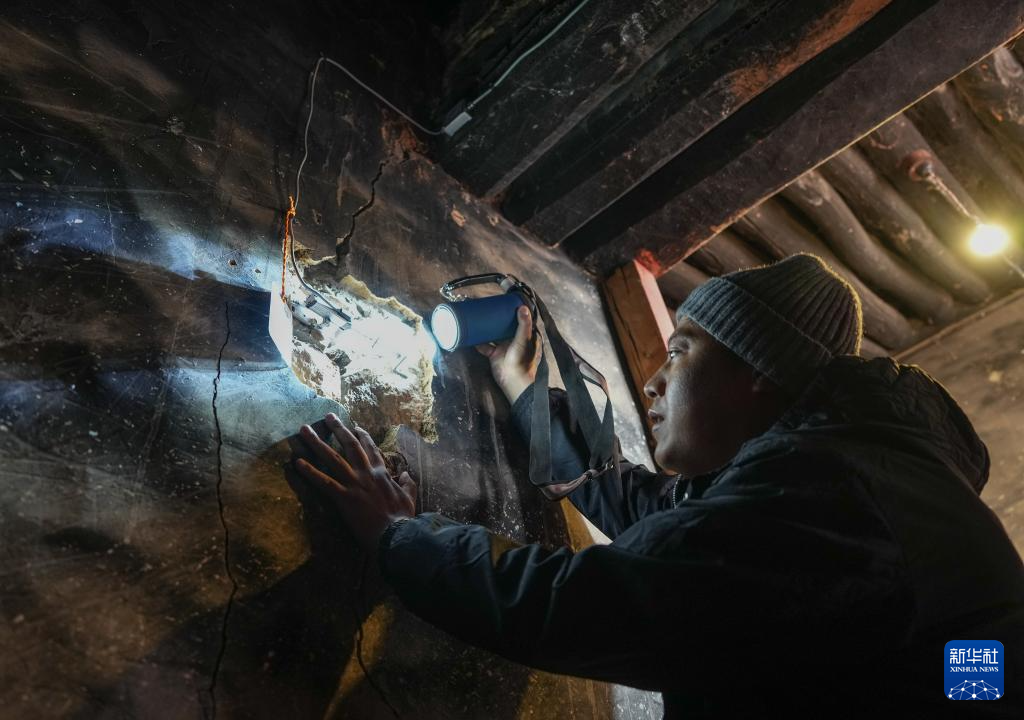 12月4日,布達拉宮監(jiān)測中心的工作人員旦增旺堆巡查布達拉宮地壟傳感器設備。新華社記者 晉美多吉 攝