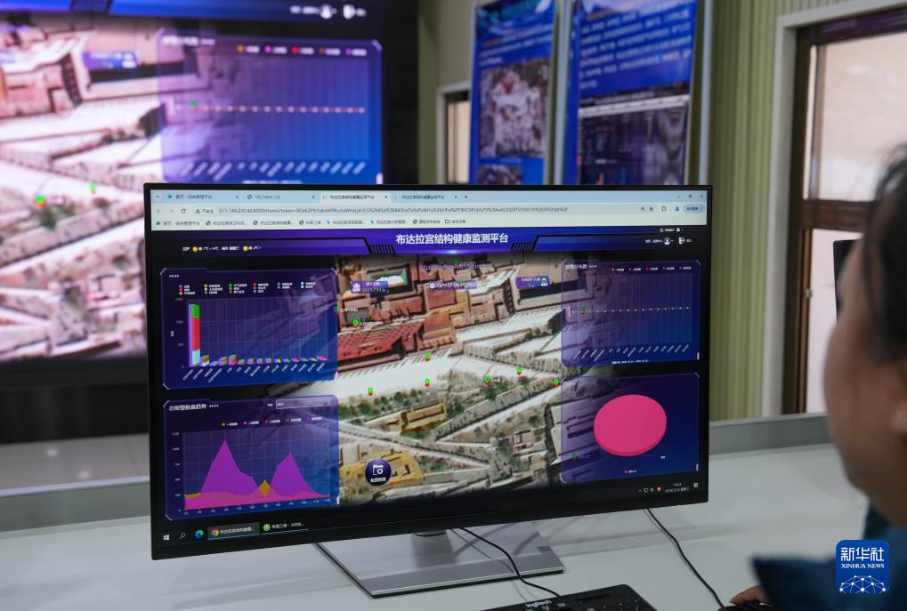 為保護好這一歷史文化瑰寶,布達拉宮監(jiān)測中心的工作人員利用無人機和3D掃描技術,繪制了宮殿的高清圖像,通過現(xiàn)代科技手段精確記錄和保存下布達拉宮一磚一瓦的信息,為確保宮殿安全提供數(shù)據(jù)支撐。同時,分布在布達拉宮各處的傳感器,24小時不間斷監(jiān)測布達拉宮建筑的安全情況。