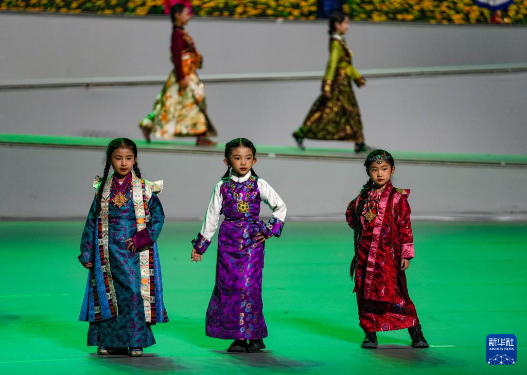 1月5日,小朋友在兒童服飾秀上進(jìn)行展示。新華社記者 晉美多吉 攝