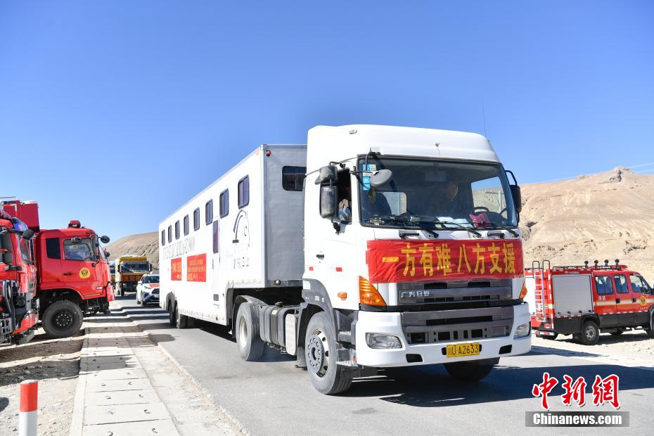 1月9日,西藏自治區(qū)定日縣曲洛鄉(xiāng)措昂村,滿載救災(zāi)物資的貨車抵達(dá)安置點(diǎn)。當(dāng)日,位于西藏自治區(qū)定日縣曲洛鄉(xiāng)措昂村安置點(diǎn),西藏各級(jí)救援人員和愛(ài)心企業(yè)不斷轉(zhuǎn)運(yùn)、發(fā)放生活物資、搭建活動(dòng)板房、全力保障受災(zāi)民眾的飲食供應(yīng)等,保障受災(zāi)民眾基本生活。中新社記者 貢嘎來(lái)松 攝