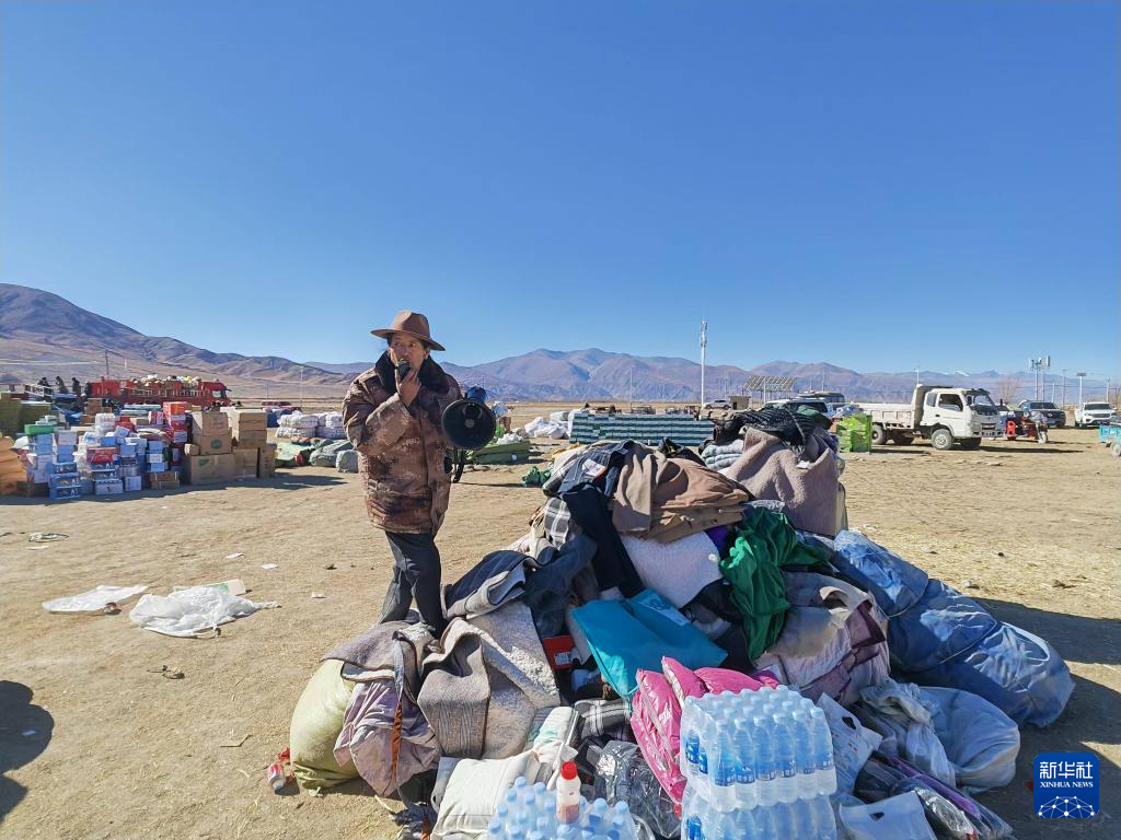 9日上午11時許,在西藏日喀則市拉孜縣拉孜鎮(zhèn)措布村村委會門口,52歲的村黨支部書記達(dá)娃正在調(diào)度抗震物資。