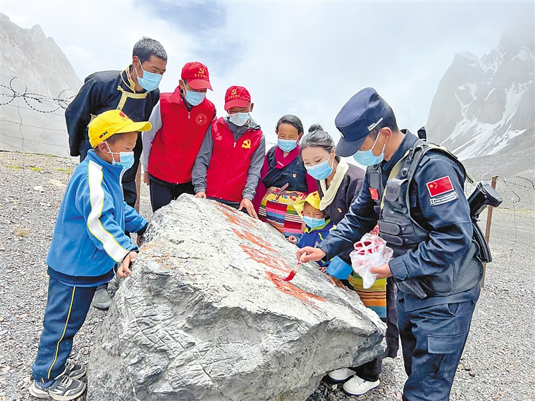 拉青拉山口是吉隆縣貢當(dāng)鄉(xiāng)境內(nèi)4座通外山口之一,也是中尼傳統(tǒng)邊貿(mào)通道,地形條件極其復(fù)雜。李錦一介紹,為增強(qiáng)黨員干部、邊境群眾和社會各界對國家安全、邊境穩(wěn)定的關(guān)心關(guān)注,貢當(dāng)鄉(xiāng)創(chuàng)新思路開展“國旗插在最前沿 我為祖國守邊關(guān)”系列活動。活動定期邀請任職干部、返鄉(xiāng)探親干部、休假返鄉(xiāng)軍人、節(jié)假日在鄉(xiāng)學(xué)生等一同參與界樁描紅、同升國旗、邊境巡邏等各類活動,讓更多人參與到守護(hù)邊疆的行動中來。