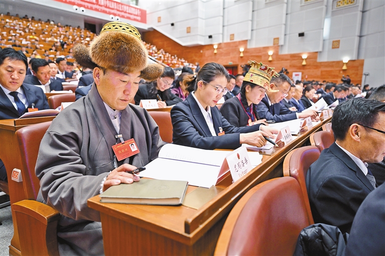 19日上午,自治區(qū)十二屆人大三次會議在拉薩開幕。圖為代表們認(rèn)真聆聽政府工作報(bào)告。記者 旦增西旦 攝