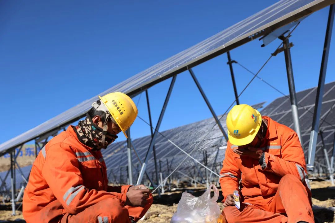 清晨,當(dāng)?shù)谝豢|陽光灑在雅拉香布雪山上時(shí),才朋光伏電站的工作人員也便開始了一天的忙碌。在5000 多米的高海拔地區(qū),空氣稀薄,寒風(fēng)凜冽,每一次呼吸都像是在挑戰(zhàn)身體的極限。然而,這些困難并沒有阻擋他們工作的腳步。