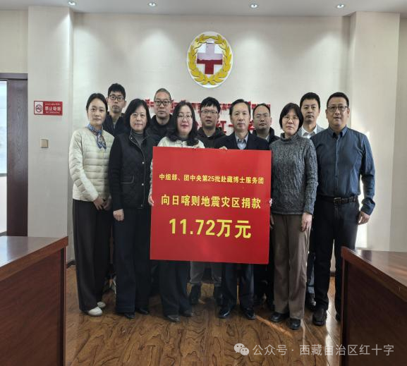 2025年1月7日,西藏日喀則市定日縣不幸遭受6.8級(jí)地震重創(chuàng),導(dǎo)致重大人員傷亡及財(cái)產(chǎn)損失。1月14日,中組部、團(tuán)中央第25批赴藏博士服務(wù)團(tuán)響應(yīng)黨中央號(hào)召順利抵達(dá)拉薩。雖然大家還沒完全克服高反帶來的不適,但災(zāi)情深深牽動(dòng)著所有博士服務(wù)團(tuán)成員的心,大家紛紛表示要捐款為災(zāi)區(qū)略盡綿薄之力。應(yīng)大家的要求,1月17日,博士服務(wù)團(tuán)舉行了抗震救災(zāi)募捐活動(dòng),共籌集善款11.72萬(wàn)元。