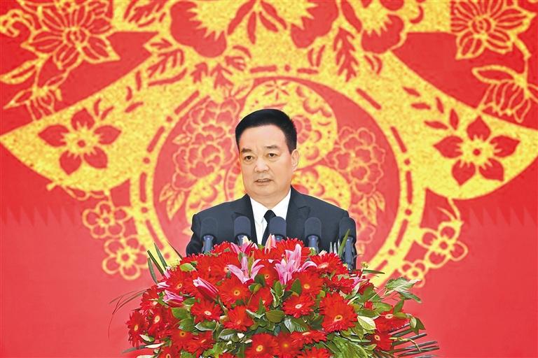 王君正在致辭中說,2024年是西藏經(jīng)濟社會發(fā)展歷程中不平凡的一年。自治區(qū)黨委團結(jié)帶領(lǐng)全區(qū)各族干部群眾,深入貫徹落實習近平總書記關(guān)于西藏工作的重要指示和新時代黨的治藏方略,緊緊圍繞“四件大事”落實,努力推動長治久安和高質(zhì)量發(fā)展取得新成效。牢固樹立總體國家安全觀,堅持警鐘長鳴、警惕常在,把維穩(wěn)工作做在日常、做到經(jīng)常、落實在基層,加快推進依法治藏,建設更高水平的法治西藏,確保社會大局持續(xù)和諧穩(wěn)定,長治久安的基礎(chǔ)更加牢固。完整準確全面貫徹新發(fā)展理念,落實“三個賦予一個有利于”總要求,傳統(tǒng)產(chǎn)業(yè)提質(zhì)增效,新興產(chǎn)業(yè)加快發(fā)展,營商環(huán)境持續(xù)優(yōu)化,努力推動經(jīng)濟社會高質(zhì)量發(fā)展,確保經(jīng)濟發(fā)展當前有活力、未來有潛力。(下轉(zhuǎn)第二版)(緊接第一版) 堅持以人民為中心的發(fā)展思想,持續(xù)改善各族群眾的生產(chǎn)生活條件,改進工作方式方法,采取針對性措施解決好群眾關(guān)心的醫(yī)療、教育、就業(yè)等實際問題,西藏班招生規(guī)模不斷擴大,全區(qū)城鄉(xiāng)面貌發(fā)生深刻變化,各族群眾的獲得感幸福感安全感持續(xù)增強。持之以恒推進全面從嚴治黨,堅決貫徹黨中央關(guān)于全面從嚴治黨的戰(zhàn)略部署,牢固樹立憑能力用干部、以實績論英雄的鮮明用人導向,努力建設一支忠誠干凈擔當?shù)母刹筷犖?,黨的戰(zhàn)斗力、凝聚力、領(lǐng)導力、號召力不斷增強。日喀則市定日縣地震發(fā)生后,自治區(qū)黨委認真貫徹落實習近平總書記重要指示精神和中共中央政治局常務委員會會議精神,按照黨中央、國務院決策部署,全區(qū)黨政軍警民齊心協(xié)力、協(xié)調(diào)聯(lián)動,廣大黨員干部勇于擔當、沖鋒在前,科學救治受傷群眾,全力搶修基礎(chǔ)設施,妥善安置受災群眾,確保了人民群眾生命財產(chǎn)安全,抗震救災工作取得階段性勝利。西藏各項事業(yè)的發(fā)展進步,是以習近平同志為核心的黨中央英明領(lǐng)導的結(jié)果,是習近平新時代中國特色社會主義思想科學指引的結(jié)果,是全區(qū)各族人民努力奮斗的結(jié)果。