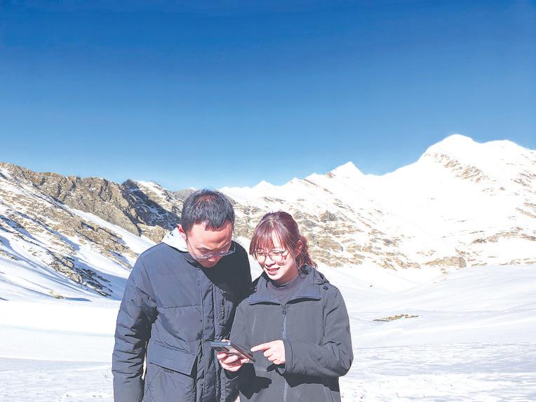 春節(jié)將至,中國移動運(yùn)維工程師陳湘萍和白瑪?shù)┣谇巴鞑啬乔芯瘎?wù)工作點(diǎn)進(jìn)行量子密訊維護(hù)的路上。正值寒冬臘月,在平均海拔超過4500米的西藏地區(qū),空氣稀薄、冰天雪地、呵氣成冰。他們“全副武裝”,全身包裹得只露出眼睛。一人提著檢測設(shè)備,另一人提著熱水壺,深一腳淺一腳地向工作點(diǎn)走去。
