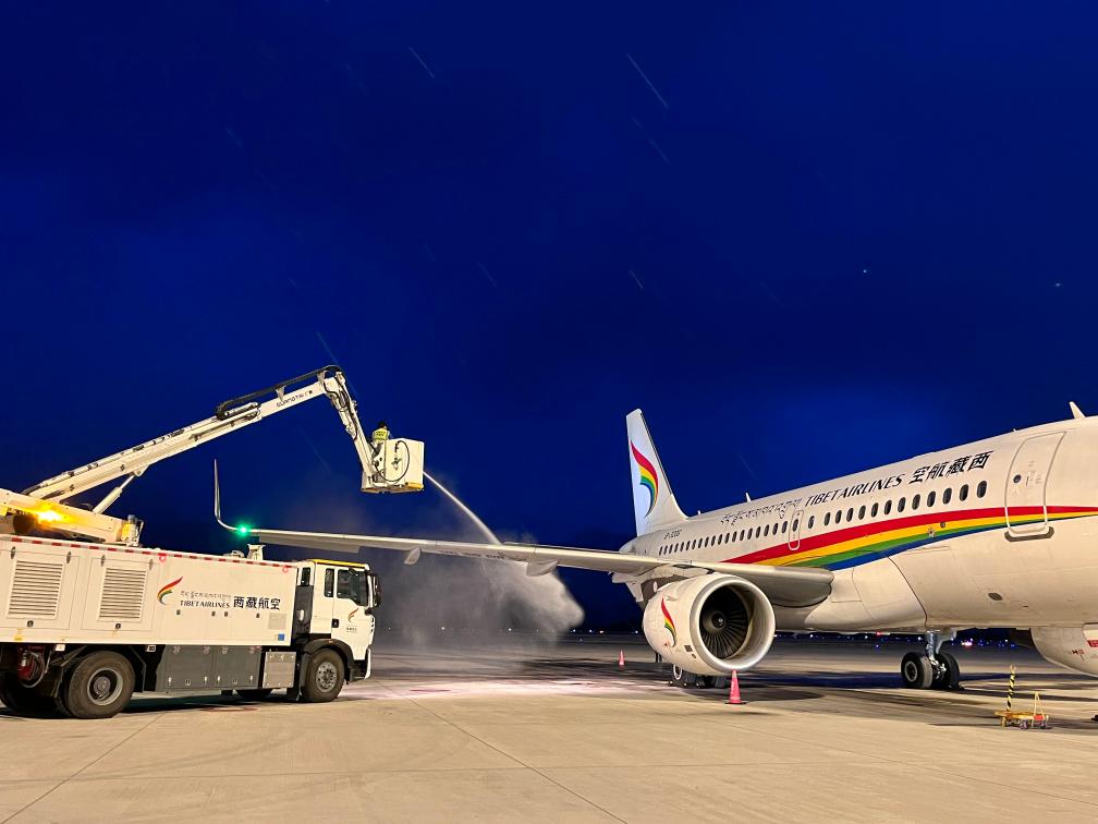 2月19日,停在拉薩貢嘎國際機(jī)場的TV9701航班。(民航西藏自治區(qū)管理局供圖)