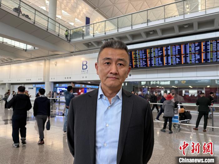 2月19日,西藏航空“拉薩-成都天府-香港”航線開通。圖為西藏航空副總經(jīng)理張兵兵在香港國(guó)際機(jī)場(chǎng)抵港大堂接受中新社記者采訪。中新社記者 韓星童 攝