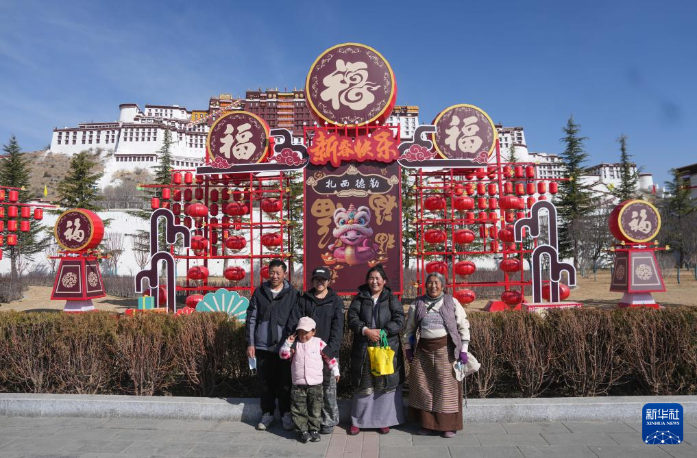 2月28日,來自西藏那曲市比如縣的一家人在拉薩布達(dá)拉宮前合影留念。
