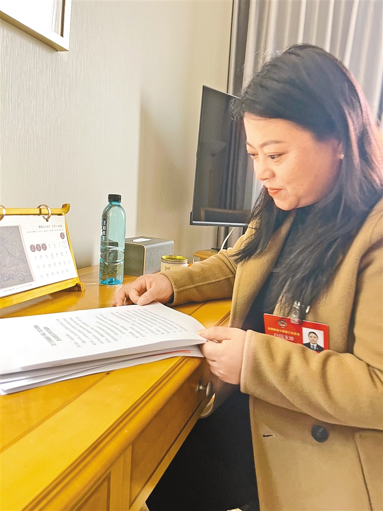 白瑪玉珍在整理履職交流材料。記者 丹增平措 攝