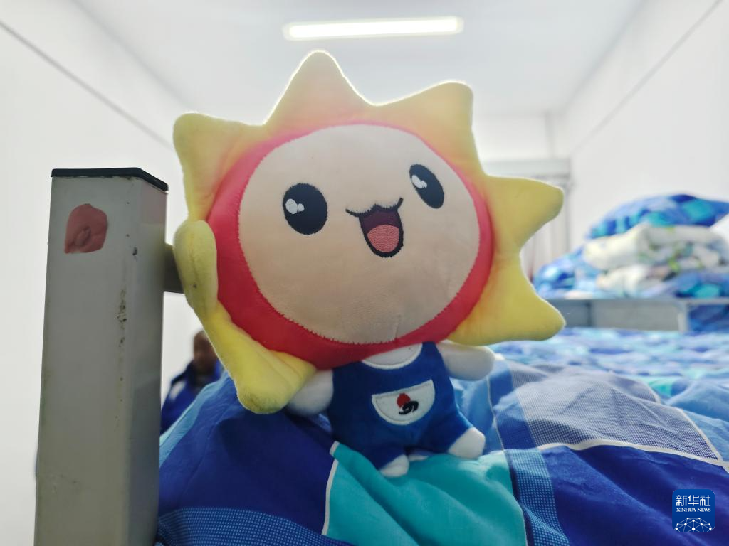 學生宿舍床鋪上擺放的“太陽娃娃”毛絨玩具。新華社記者 李西銓 攝