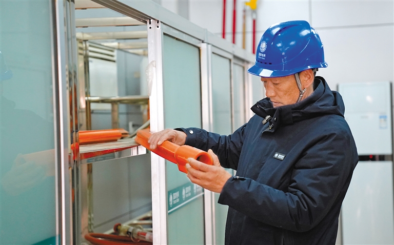 扎西尼瑪在進行電力安全工器具檢查。 本報記者 薛瑩 拉巴卓瑪 攝
