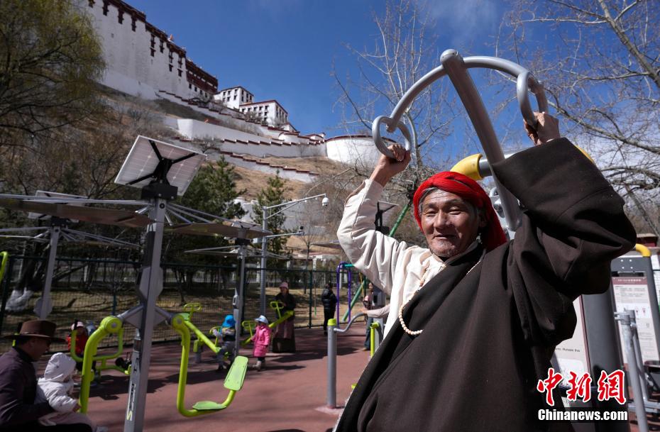 3月13日,民眾在西藏拉薩宗角祿康公園健身。坐落于布達(dá)拉宮腳下的宗角祿康公園是拉薩民眾戶外活動的一大場所。隨著3月春回拉薩,大家來到公園散步、健身,一片春意盎然的景象。