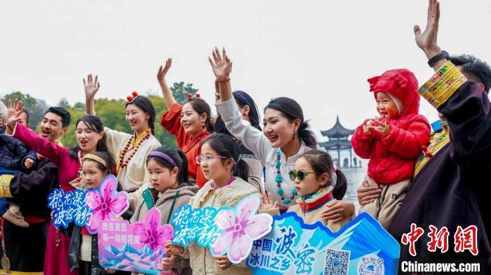 活動當天,身著彩云紋藏裝的波密兒女踏歌而來,沿著斷橋、雷峰塔等西湖文化地標,開啟流動的藝術(shù)巡演。藏式廣袖輕揚間掠過湖光,自發(fā)加入的游客與藏族演員即興共舞,在千年勝景中勾勒出民族交往交流交融的動人圖景。活動現(xiàn)場,熱情的藏族姑娘、藏族小伙為參與互動的游客送上“桃花氣球”和文創(chuàng)禮品,將高原春日的印記留在江南水岸。