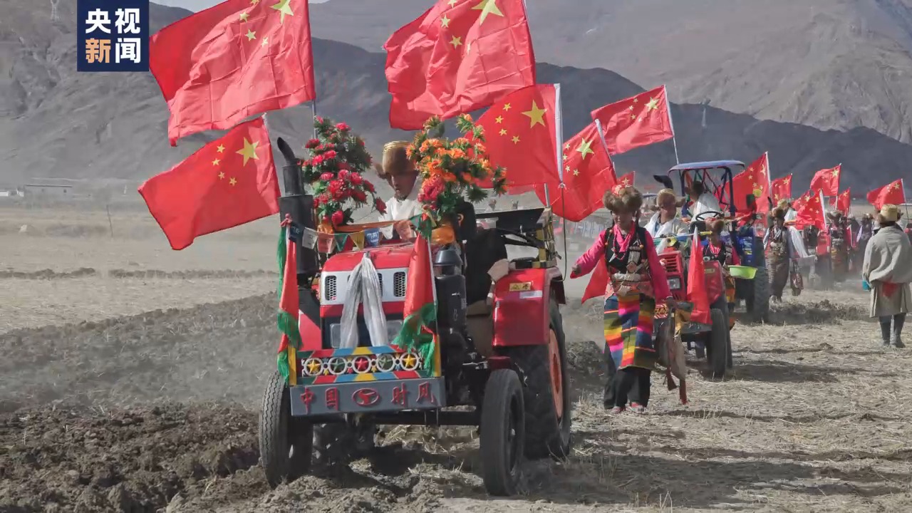 村民們跳起歡快的傳統(tǒng)舞蹈拉孜堆諧,40多臺身著“盛裝”的拖拉機則在青稞地里犁出了一首“春耕進行曲”。