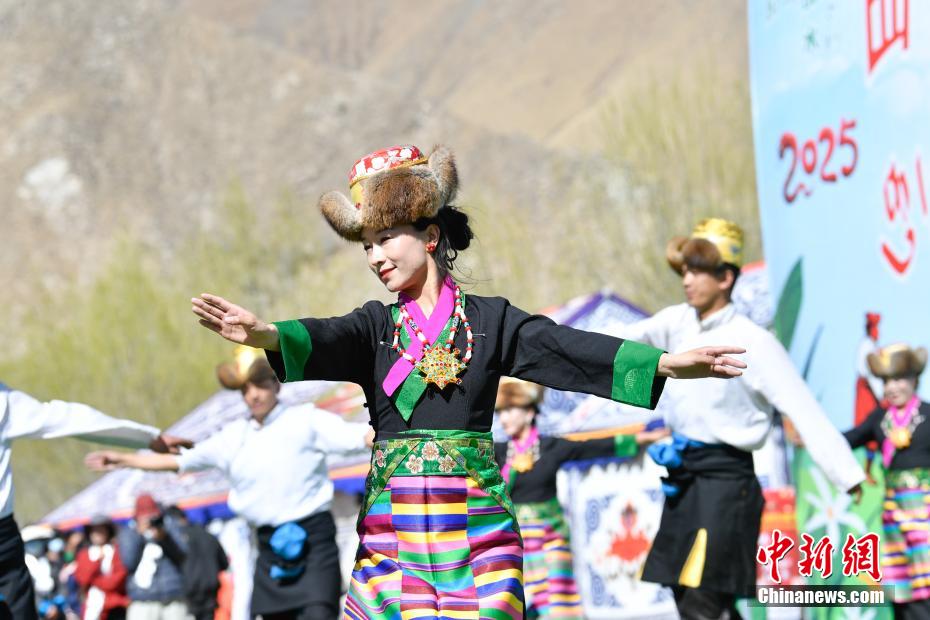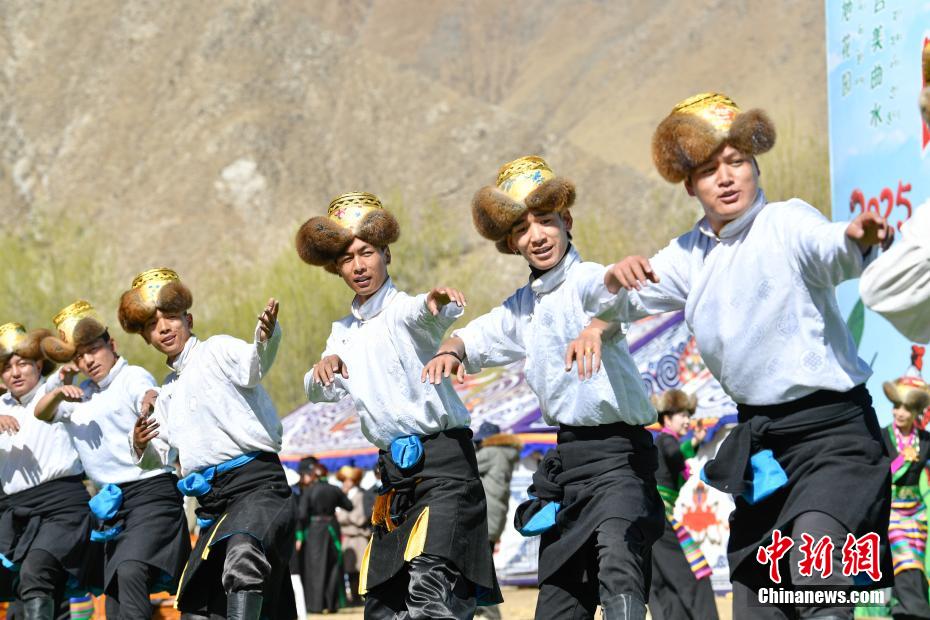 3月16日,西藏拉薩迎來(lái)一年一度的傳統(tǒng)春耕儀式。當(dāng)日,拉薩市曲水縣色達(dá)村村民身著節(jié)日盛裝,相聚在田間,載歌載舞,共同迎接春耕第一犁。家家戶戶端著自家的“切瑪”(象征五谷豐登)帶著青稞酒、酥油茶等物品聚在田間,互敬青稞酒,開始撒種,祈求全年風(fēng)調(diào)雨順、五谷豐登。圖為曲水縣色達(dá)村春耕儀式現(xiàn)場(chǎng),當(dāng)?shù)孛癖姳硌輫?guó)家級(jí)非物質(zhì)文化遺產(chǎn)《吉祥仲孜》。中新社記者 貢嘎來(lái)松 攝