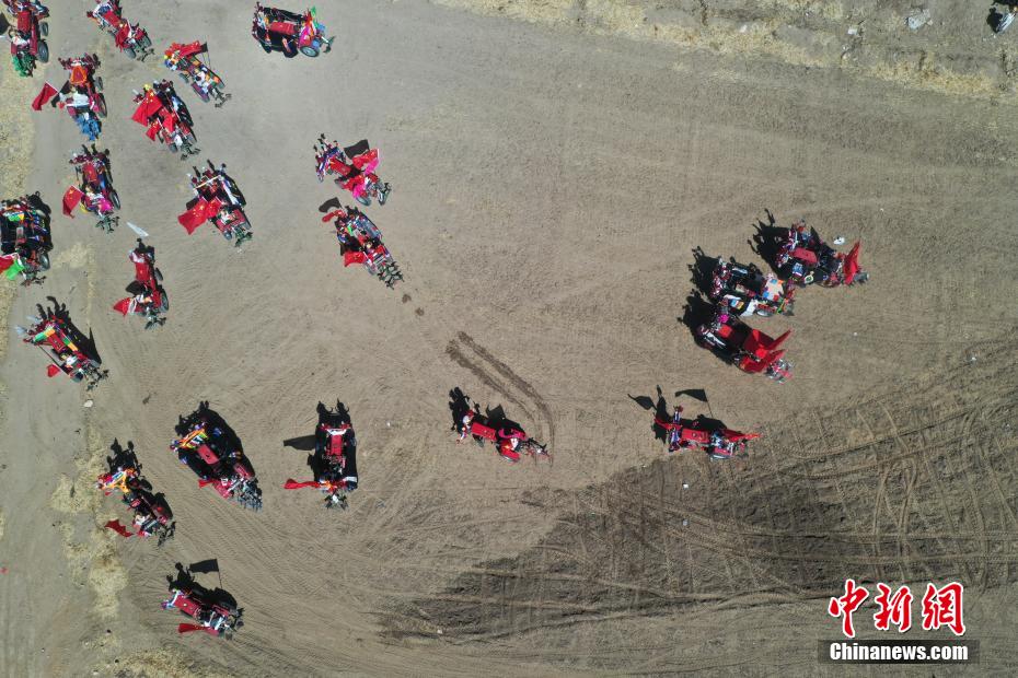 3月16日,西藏拉薩迎來(lái)一年一度的傳統(tǒng)春耕儀式。當(dāng)日,拉薩市曲水縣色達(dá)村村民身著節(jié)日盛裝,相聚在田間,載歌載舞,共同迎接春耕第一犁。家家戶戶端著自家的“切瑪”(象征五谷豐登)帶著青稞酒、酥油茶等物品聚在田間,互敬青稞酒,開始撒種,祈求全年風(fēng)調(diào)雨順、五谷豐登。圖為曲水縣色達(dá)村春耕儀式現(xiàn)場(chǎng)(無(wú)人機(jī)照片)。中新社記者 貢嘎來(lái)松 攝