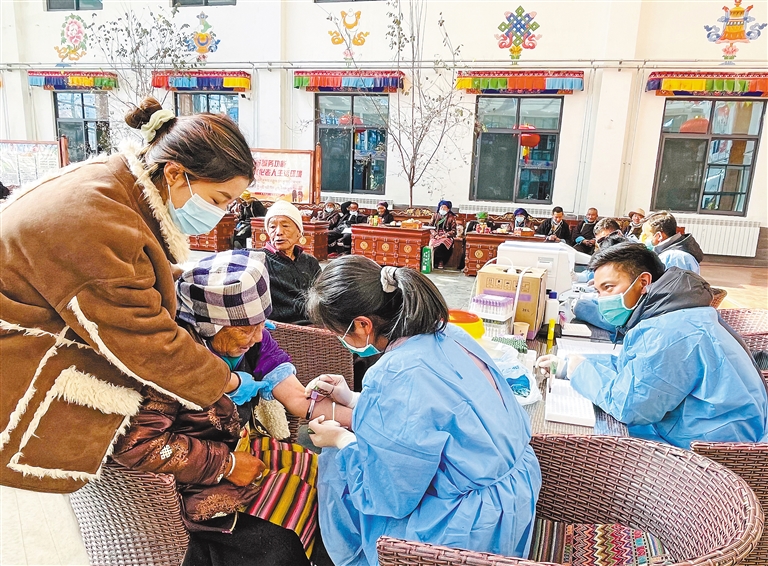 近日,浪卡子縣中心人民醫(yī)院醫(yī)療團(tuán)隊開展免費體檢公益活動,為浪卡子縣五保戶集中供養(yǎng)中心的特困人員送去關(guān)懷。