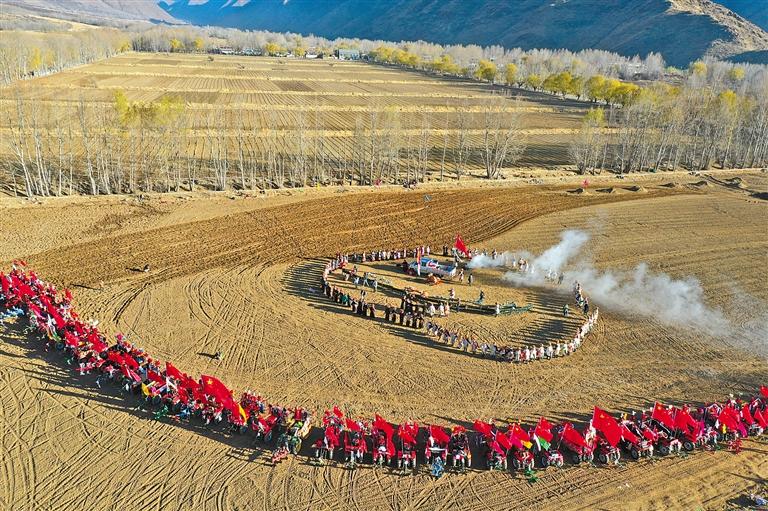 西藏農(nóng)耕文化的發(fā)祥地—雅礱河谷春耕開(kāi)犁儀式現(xiàn)場(chǎng)。記者 洛桑 通訊員 次仁龍布 攝