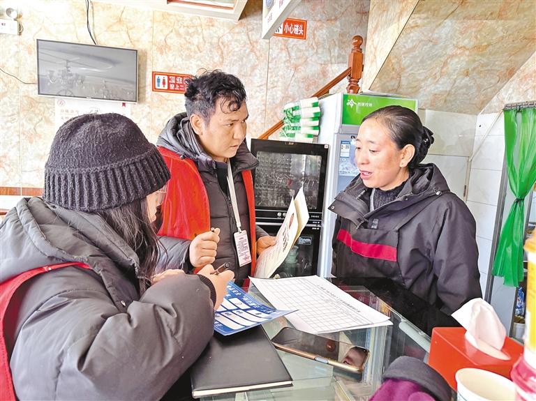 拉薩市城關(guān)區(qū)八一街道當(dāng)熱社區(qū)組織開(kāi)展食品安全隱患排查工作。這是工作人員在仔細(xì)檢查商戶營(yíng)業(yè)執(zhí)照、食品衛(wèi)生許可證和健康證等持證情況。記者 王敏 攝