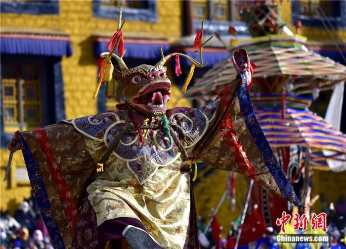 2025年2月27日是藏歷十二月二十九,西藏拉薩楚布寺舉行“羌姆”(跳神)活動,以驅(qū)邪送崇、祈福禳災(zāi),同時表達對藏歷木蛇新年的美好祈愿。中新社記者 李林 攝