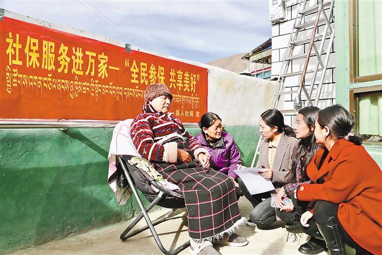 山南市瓊結縣人力資源和社會保障局工作人員入戶辦理養(yǎng)老保險待遇資格認證。