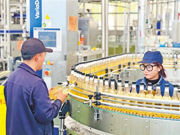 西藏娃哈哈食品有限公司員工在調試灌裝機。