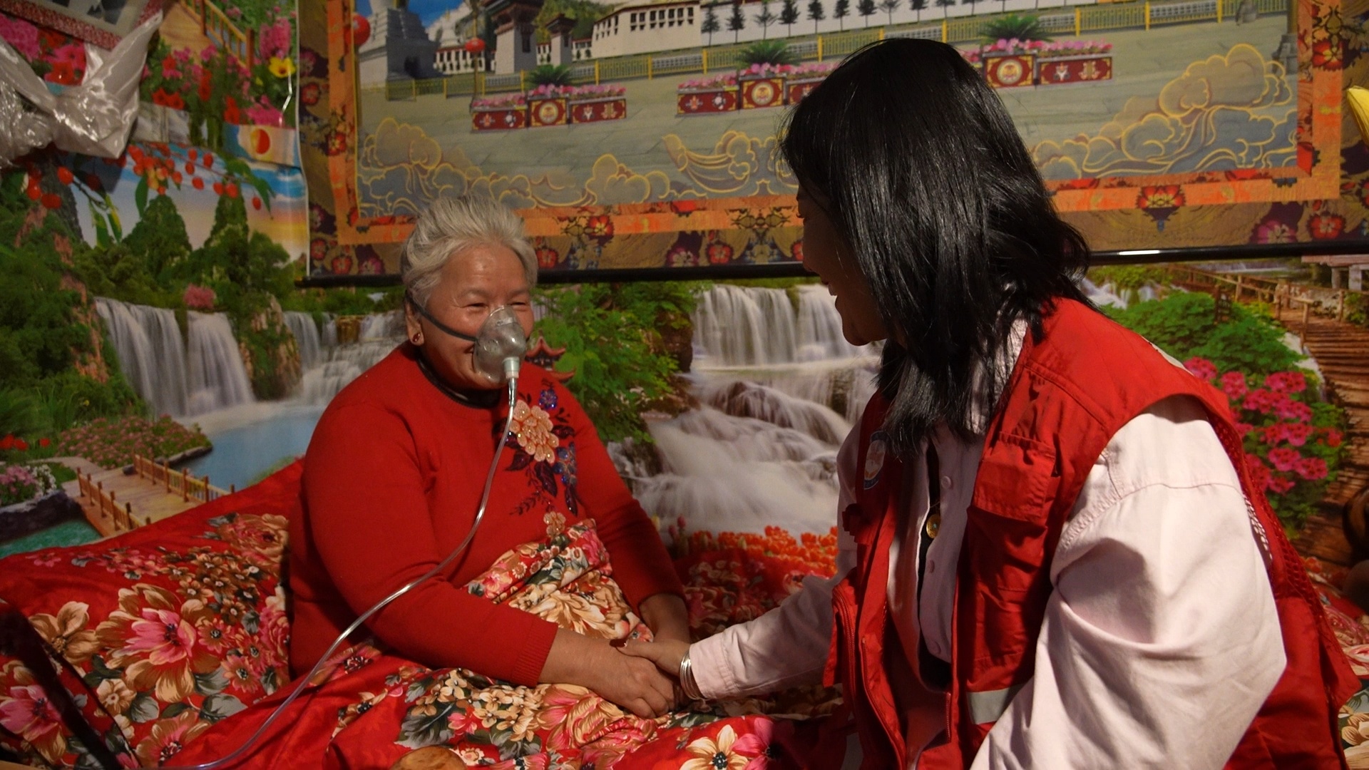 如今,像尼瑪這樣的特殊困難老人,只要輕按床頭按鈕,15分鐘內(nèi)就能叫來(lái)社區(qū)工作人員。