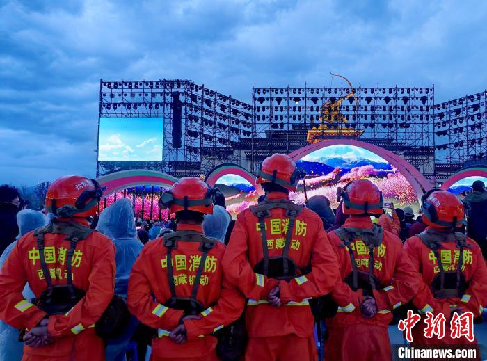 圖為消防員在林芝第二十二屆桃花旅游文化節(jié)開幕式上執(zhí)勤。李國(guó)燾 攝