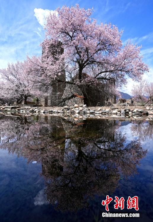 秀巴古堡位于西藏林芝市工布江達(dá)縣,是古代的軍事設(shè)施,距今已有1600多年的歷史。時(shí)下,古堡之下遍布的桃花競(jìng)相綻放,粉白桃花點(diǎn)綴著滄桑古堡,景色壯麗。圖為4月5日,秀巴古堡下桃花綻放。中新社記者 李林 攝