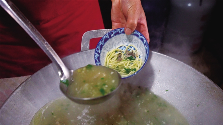 2010年,鹽井加加面被列入西藏自治區(qū)級非物質(zhì)文化遺產(chǎn)代表性名錄。37歲的果拉卓瑪,是這項(xiàng)技藝的傳承者之一。她回憶道,早年父母在街邊支攤賣面時,加加面只是再尋常不過的一道家常面食。如今,這碗面被賦予了文化符號的意義——食客們比拼碗數(shù),最高紀(jì)錄達(dá)147碗,若破紀(jì)錄,還能終生免費(fèi)吃面?!笆^計(jì)數(shù)、民歌敬酒,這些傳統(tǒng)習(xí)俗讓吃面變成了一場熱鬧的儀式。”果拉卓瑪笑著說。