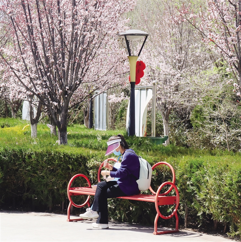 這幾條路相連接,一路都是榆葉梅、紫葉李、桃樹等,成團(tuán)成簇的花朵裝點(diǎn)著街道,綠化帶里的蒲公英也冒出頭來,小黃花零星綻放。一路走來,有看不完的花,賞不完的景。你只需放慢腳步,便能在最常走的路上,邂逅拉薩明媚的春光。