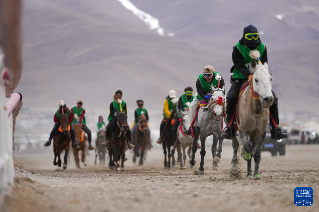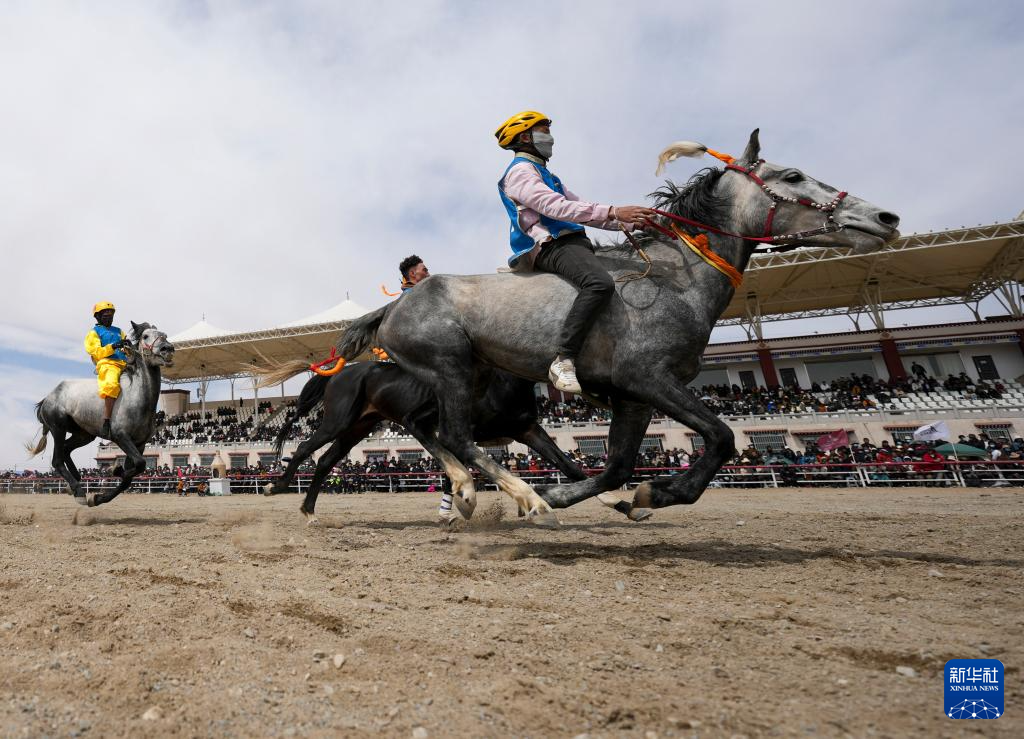 4月26日,騎手在進(jìn)行賽馬比賽。新華社記者 晉美多吉 攝