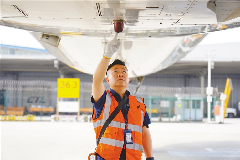 “因?yàn)槲业募亦l(xiāng)挨著機(jī)場(chǎng),從小就看著飛機(jī)起起落落。后來知道有飛機(jī)維修這個(gè)行業(yè),覺得能親手保障每一架飛機(jī)的安全飛行,是件多么有意義的事情,就一頭扎進(jìn)了這個(gè)行業(yè)。”談及與飛機(jī)維修的緣分,何濤眼中閃著光。