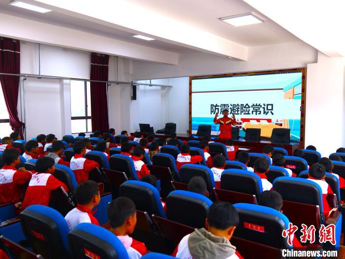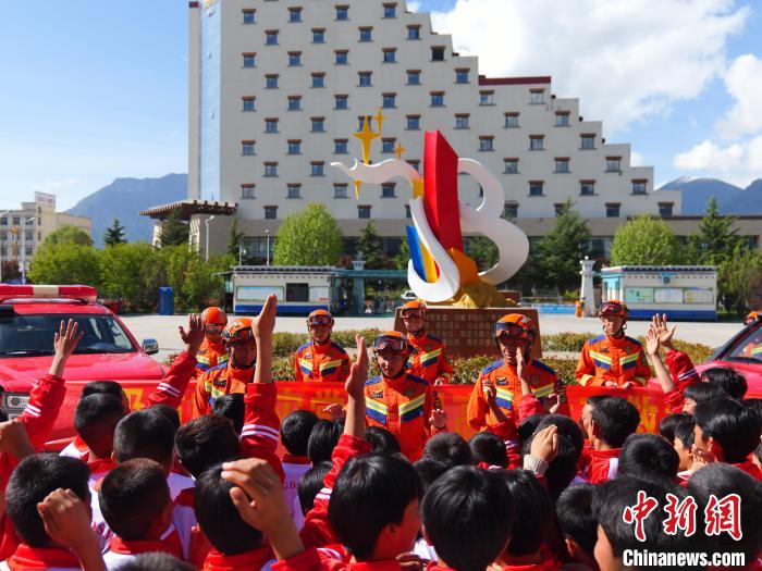 圖為消防救援人員組織學(xué)生進(jìn)行防災(zāi)減災(zāi)知識互動(dòng)。林芝森林消防支隊(duì)供圖