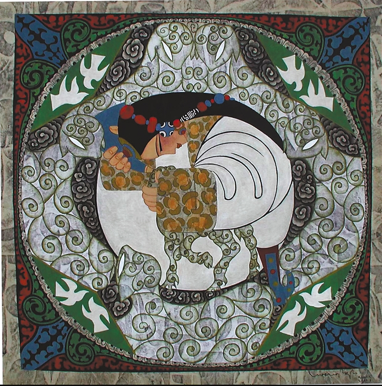 1983年,命運(yùn)的轉(zhuǎn)機(jī)再次降臨。西藏文化部門編纂《西藏舞蹈集成》,急需插圖畫家,“會畫畫的舞者”昂桑被借調(diào),并派至蘇州培訓(xùn)。這段脫離舞蹈訓(xùn)練的經(jīng)歷,讓他明確內(nèi)心方向。1985年,他考入西藏大學(xué)藝術(shù)系,成為唐卡大師丹巴繞旦首批弟子,在導(dǎo)師的指導(dǎo)下,他觸摸到千年礦物顏料的細(xì)膩,領(lǐng)悟了傳統(tǒng)藝術(shù)的精神內(nèi)核。