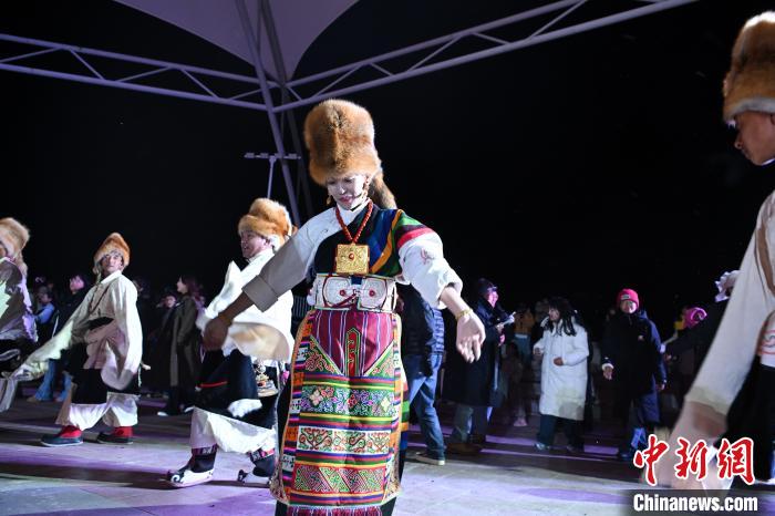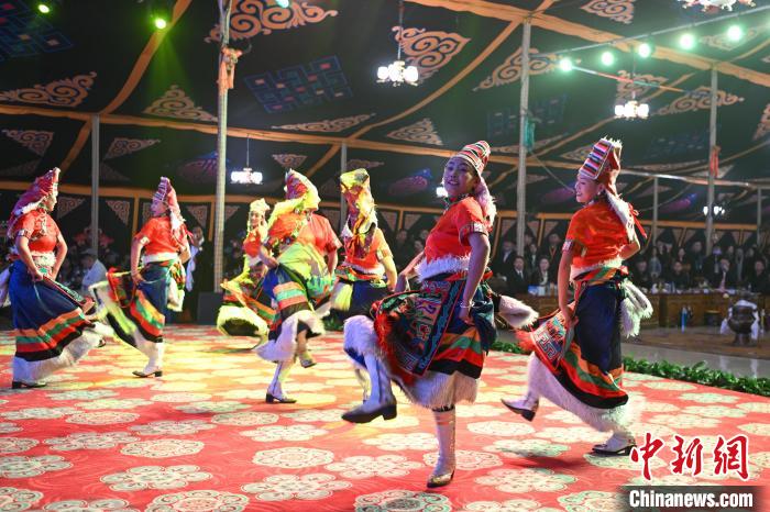 圖為“情定當雄”篝火鍋莊晚會文藝演出現(xiàn)場。中新社記者 貢嘎來松 攝